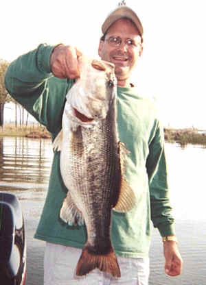 John Hecker of New Orleans, LA with a 9 lb Bass caught while fishing with J&J Guide Service - April 12, 2002