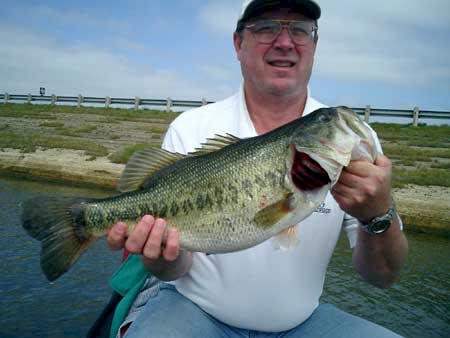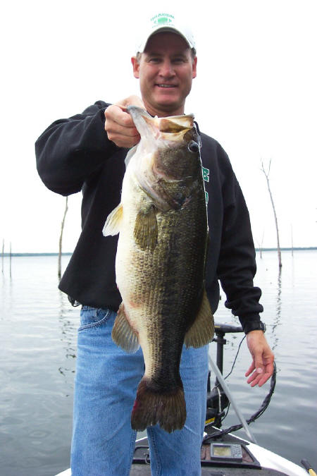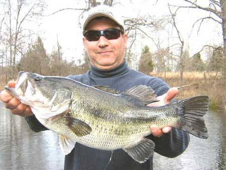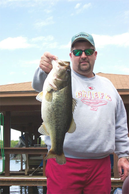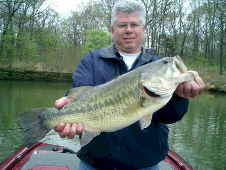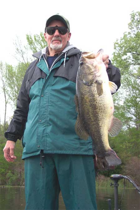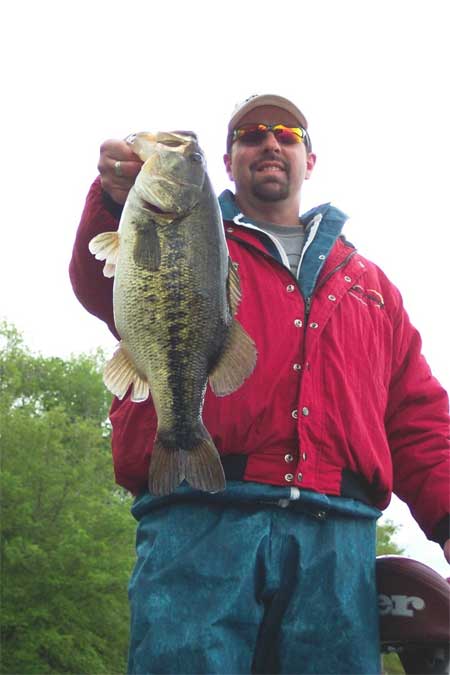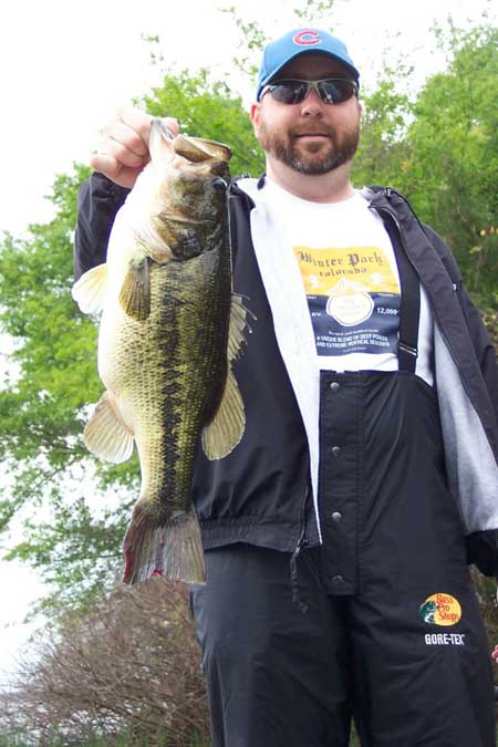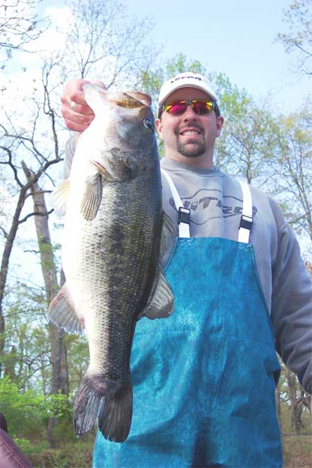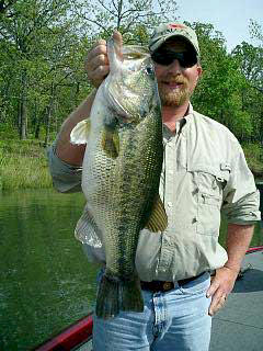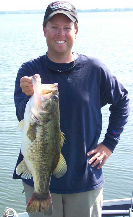 Brent Cotton with a big bass caught while fishing with Pro Guide Tom Redington - April, 2005
