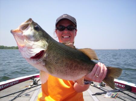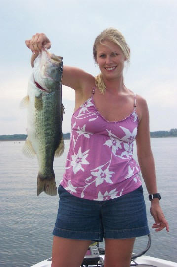 Mrs. Farcel from Minnesota with a 7 1/2 pound hog. Bass fishing with Pro Guide John Tanner - June, 2006