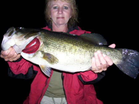 Mrs. Barker with an 11 lbs and 1 oz bass that she caught on June 3rd.