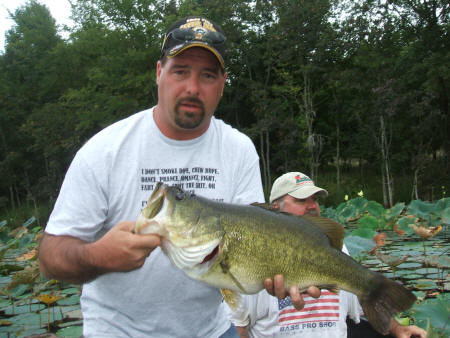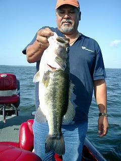 Mike Geer with a nice bass caught while fishing with Pro Guide John Tanner. -