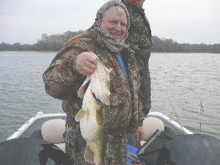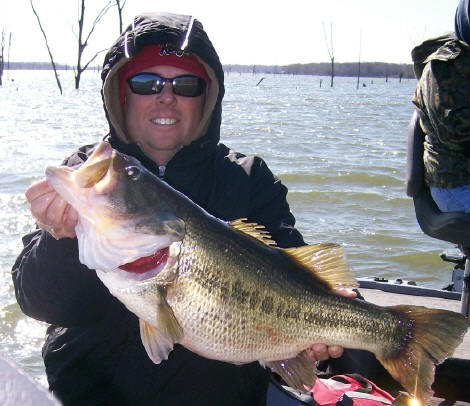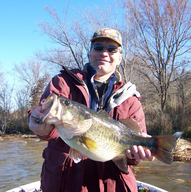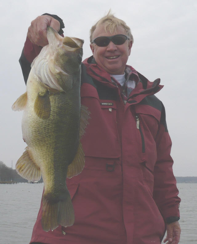Mike Biggins with a fat 9 lb 13 oz prespawn beauty, caught 1-19-09 with Pro Guide Tom Redington on a lipless crankbait -