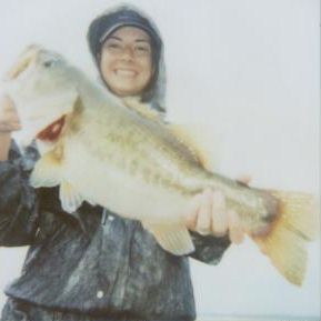Stephanie Greathouse with a 7.6 lb bass caught while