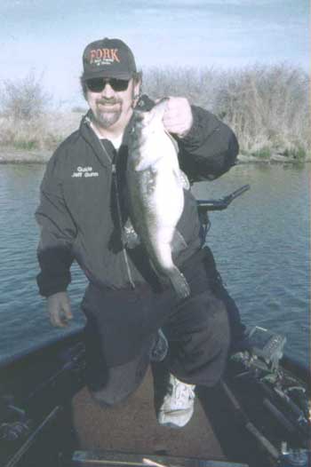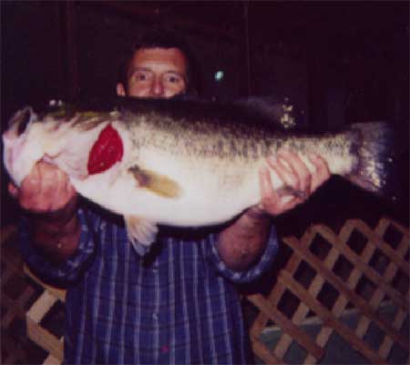 Lake Fork Pro Guide Jeff Gunn with a 9.12 bass he caught March 2, 2004. - March, 2004