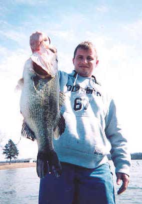 Marc Jones of Wylie TX. caught this 11.87 lb Lake Fork chunk in 5ft of water at 6:30 pm on 03-25-04 for his second big fish this month the other was a 12 lb caught on 03-10-04 both fish released. -